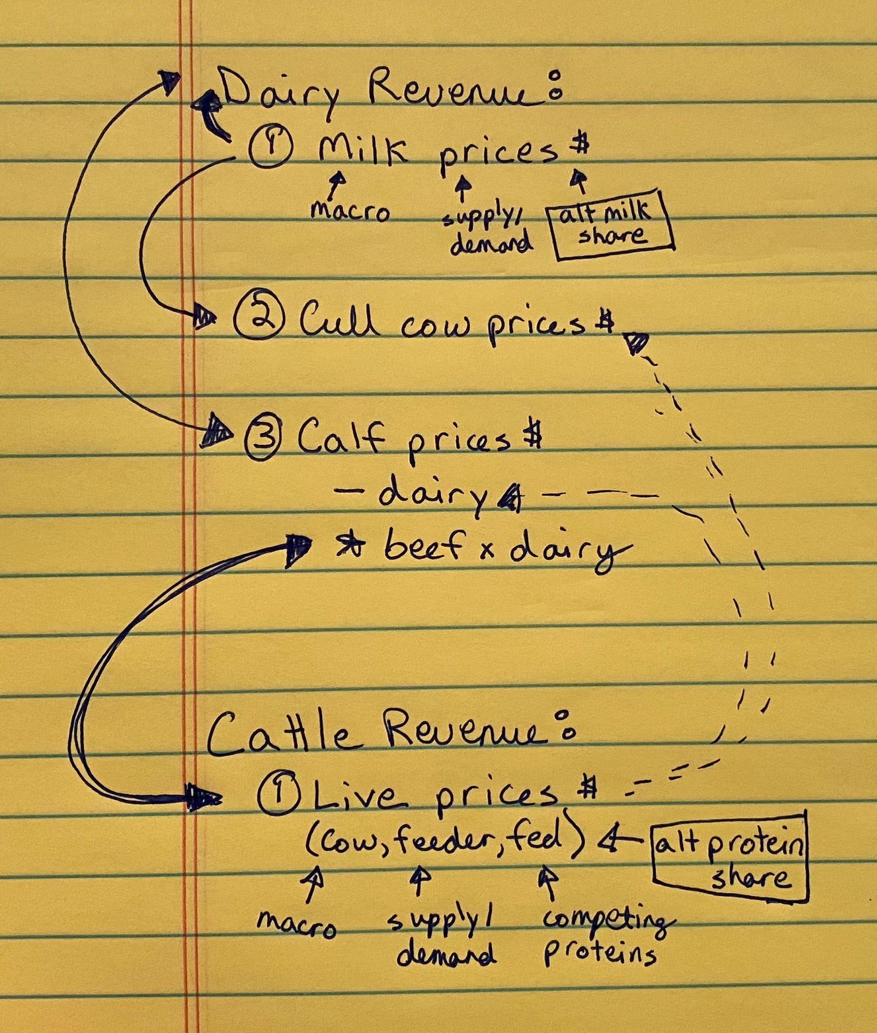 Market share for alternative milk has been a driver of milk prices, and market share for alternative meat could become a driver of meat prices…but what if market share for alternative milk becomes an indirect driver of meat prices and market share of alternative meat becomes an indirect driver of milk prices. 🤯
